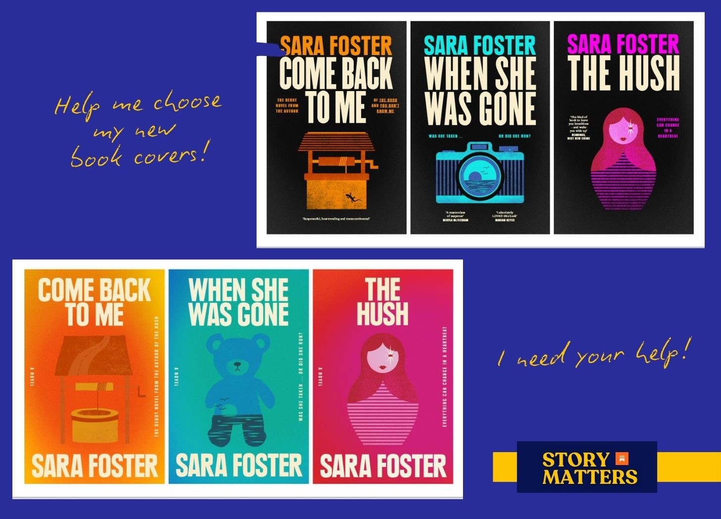 This is a very short message from me because I would dearly love your help. I’m currently rebranding my book covers because I’m going to have a go at publishing them myself in the UK, where my stories haven’t really been discovered yet. As my newsletter subscribers (some of you for over a decade!), you’re the readers who know my work the best, and I would love your thoughts on these. I’ve been working with renowned cover designer George Saad and he’s come up with some brilliant concepts for me. So the question is: which one do you love the best (you can vote in the poll) and would you be drawn to these covers? Please comment away and give me your reasons, so I can fully understand your point of view!